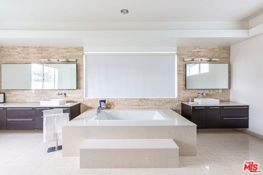 Located on a quiet Brentwood cul-de-sac just north of Sunset, this gated modern residence offers privacy, scale, and seamless indoor-outdoor living. The home features 7 bedrooms, with 5 capturing canyon and Getty Center views.Light-filled open-concept living spaces include formal living and dining areas and a chef's kitchen with center island, professional-grade appliances, walk-in pantry, and wine display.The primary suite offers a private balcony and spa-like bath with soaking tub, oversized shower, dual vanities, and walk-in closet. Additional ensuite bedrooms and a flexible media room complete the layout.Outdoor spaces feature multiple patios, a saltwater pool and spa, and lush landscaping. 2-car garage and motor court. Close to Brentwood Village, top schools, dining, and hiking trails.