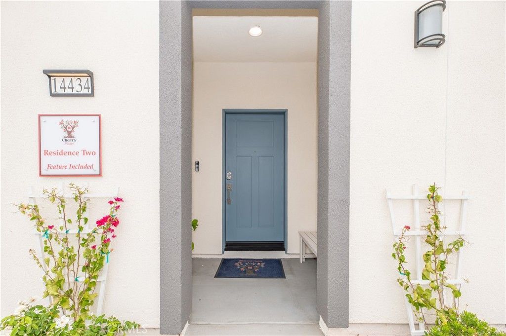 Brand-new construction condominium located in the Cherry Village community. This two-story home offers 3 bedrooms and 2.5 bathrooms, including a convenient downstairs bedroom with a private living area and kitchenette. The open-concept floor plan features a spacious great room and a large kitchen island, ideal for everyday living and entertaining. Interior highlights include quartz countertops throughout, luxury vinyl plank flooring in main living areas, and zebra blinds on all windows. A full suite of Samsung electric appliances?including refrigerator, washer, dryer, dishwasher, stove, and microwave?is included. Enjoy a private backyard patio and a 2-car attached garage. Energy-efficient with owned solar included. Conveniently located near major freeways, shopping, and dining.